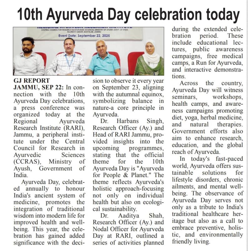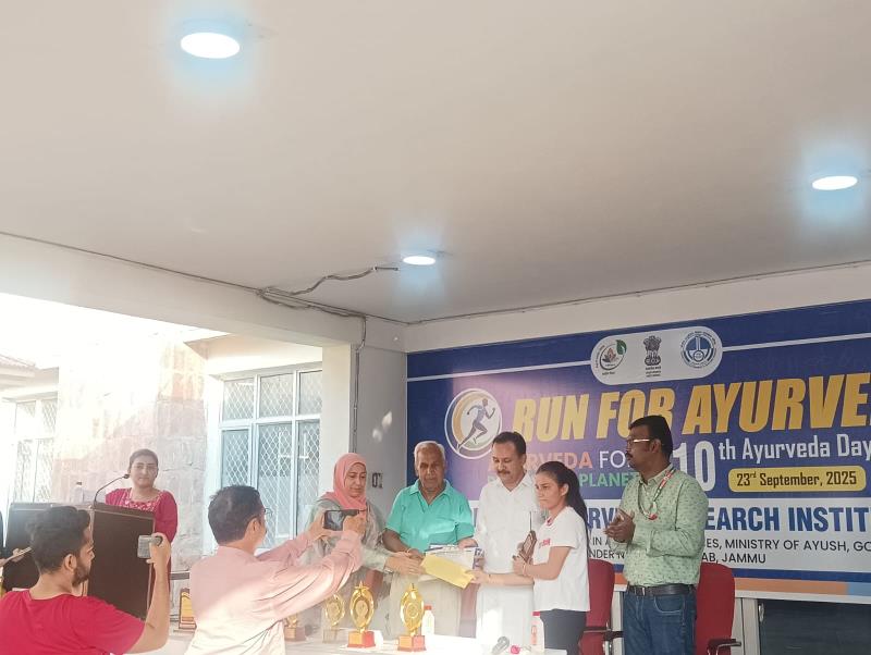 Students of Jammu Institute of Ayurveda and Research (JIAR) actively participated in the Run for Ayurveda event held at RARI, Jammu, as part of the celebrations of 10th Ayurveda Day.The participants of JIAR Showcased great enthusiasm and spirit. Preeti Thakur, a student of third prof BAMS from JIAR secured the 3rd prize, bringing laurels to the Institute. The event highlighted the importance of Ayurveda in promoting health and wellness while encouraging youth participation in fitness and traditional health awareness activities.